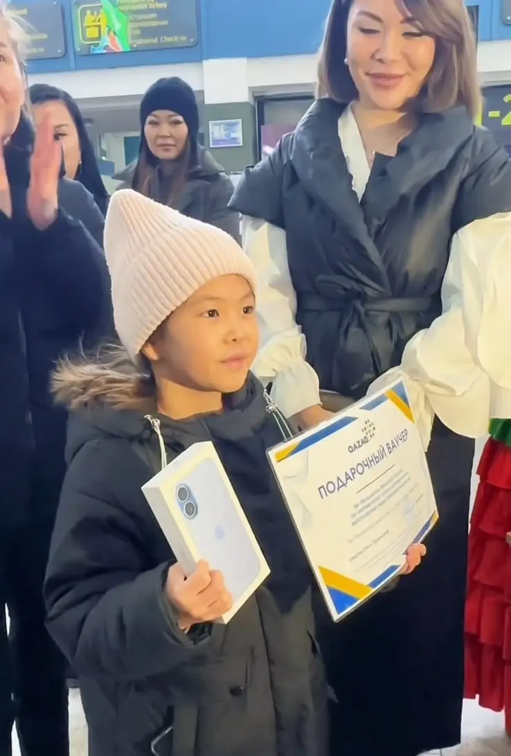 Маленькой пассажирке Актюбинский аэропорт совместно со спонсорами подарил смартфон iPhone 17, а авиакомпания Vietjet Qazaqstan вручила авиаваучер по маршруту «Актобе – Астана – Актобе».