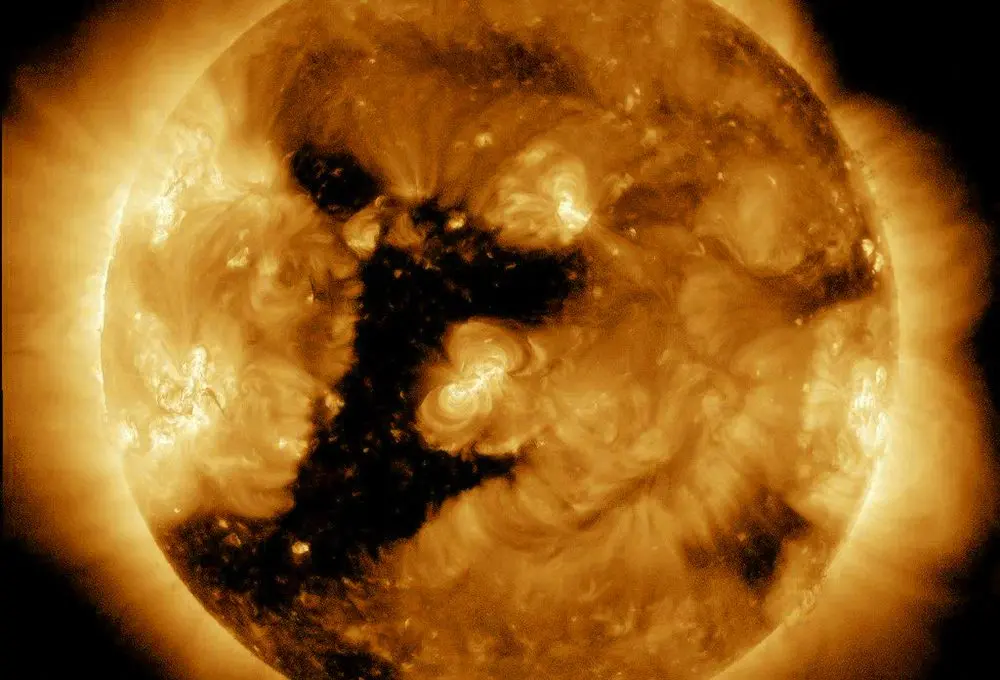 "Предварительно, придет к Земле во вторник. Ожидающийся уровень магнитных бурь — G3/G4. Нижняя граница зоны полярных сияний — до 50 градусов", — говорится в сообщении.